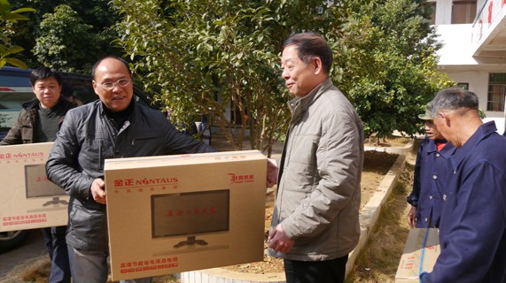 圖為馬仲華書記為崇仙鄉(xiāng)敬老院送上彩電。