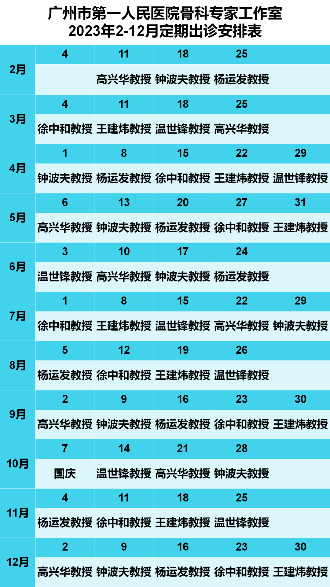 【專(zhuān)家工作室】速收藏!2023年廣州市第一人民醫(yī)院骨科專(zhuān)家工作室出診安排表