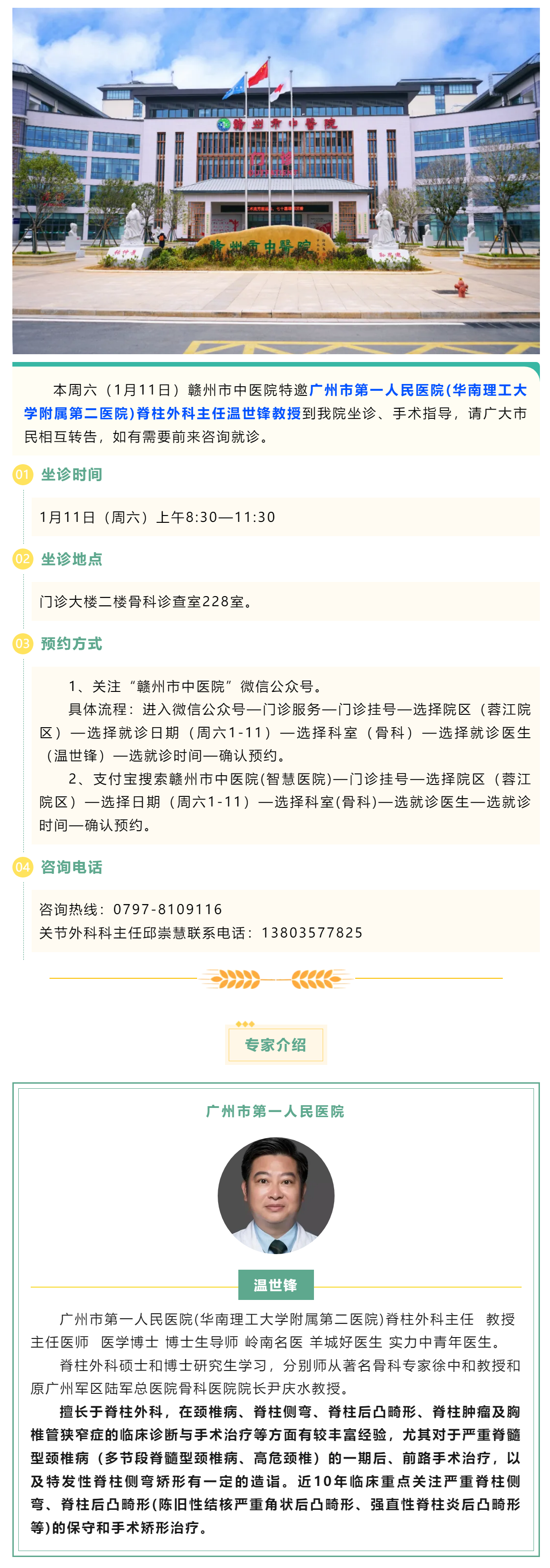 【醫(yī)訊】本周六(1月11日),廣州市第一人民醫(yī)院骨科專家溫世鋒教授來我院坐診.png